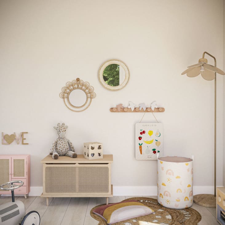 Wie süß ist denn diese Kindergarderobe! Mit dem liebevollen Vogel-Design macht Aufräumen gleich viel mehr Spaß. Aus massivem Buchenholz gefertigt, ist sie richtig stabil und mit der geölten Oberfläche auch noch kinderfreundlich. Die 50cm lange Leiste hat 5 gleichmäßig verteilte Haken, an denen Jacken, Rucksäcke und Taschen ordentlich Platz finden. Jeder Haken trägt bis zu 3kg, die ganze Garderobe bis zu 10kg - also mehr als genug für Kinderbedarf. Die Montage ist super einfach: Mit den beiliegenden Schrauben und Dübeln hast du sie schnell an der Wand. Da es sich um Massivholz handelt, kann jede Garderobe leicht in Farbe und Maserung variieren - das macht sie sogar noch einzigartiger. Perfekt fürs Kinderzimmer, den Flur oder die Spielecke!