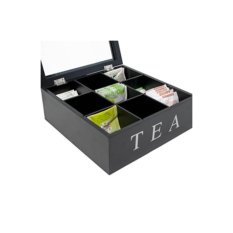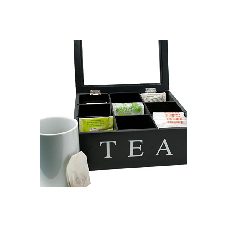 Mit praktischem Acryl-Sichtfenster - du siehst sofort, welche Teesorten du hast. Maße: 23x23x9cm, perfekt für Standard-Teebeutel. In Schwarz oder Weiß erhältlich.