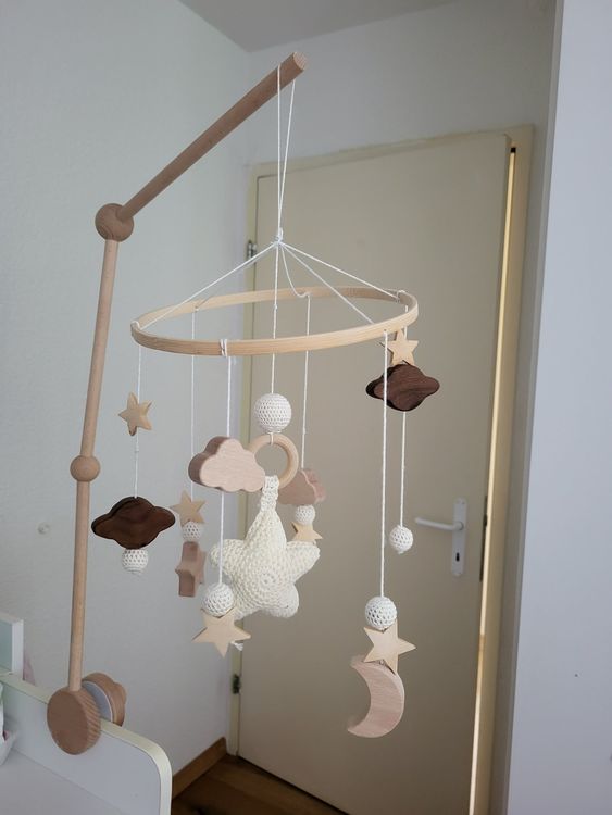 Oh, wie süß! Dieses goki Mobile mit den tanzenden Sternen und dem Mond bringt Kinderaugen zum Leuchten. Aus natürlichem Holz und fair gehandeltem Wollfilz - also komplett unbedenklich für die Kleinsten. Die sanft schwebenden Figuren faszinieren dein Baby und helfen beim Einschlafen. Kein elektrisches Gebrabbel, nur natürliche Bewegungen, die beruhigen und die visuelle Entwicklung fördern. Mit 43x42 cm die perfekte Größe für jedes Babybettchen oder Wickelkommode. Einfach aufhängen und schon verwandelst du das Zimmer in eine kleine Traumwelt. Super als Geschenk zur Geburt oder Taufe - da freuen sich sowohl die Eltern als auch das Baby. Und das Beste: Hält ewig und kann später sogar vererbt werden!