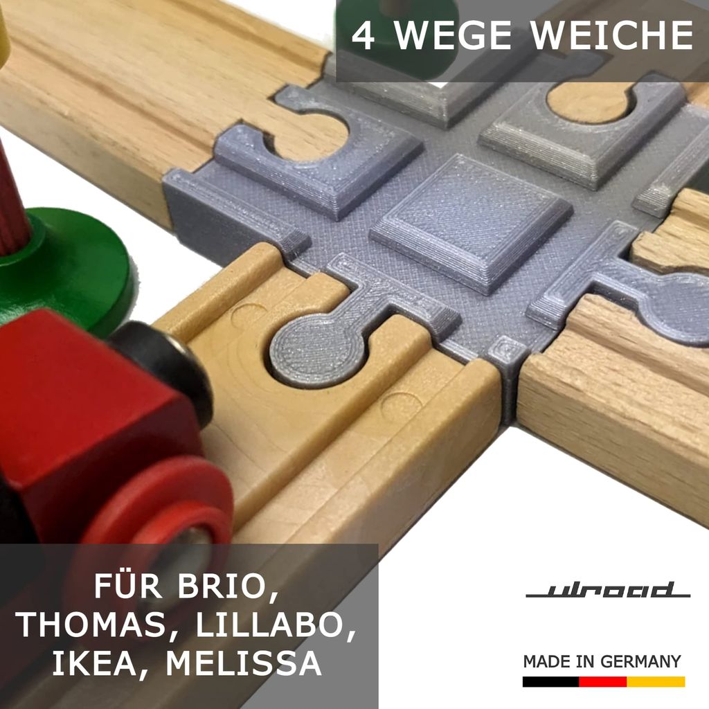 Wow, was für ein cooles Zubehör für die Holzeisenbahn! Diese mechanische Drehscheibe aus stabilem Naturholz hat ganze 8 Anschlüsse und ist 360 Grad drehbar. Perfekt für alle gängigen Schienensysteme wie Brio, Heros, Eichhorn, Ikea und Woody. Deine Kinder können damit ihre Eisenbahnstrecken total individuell gestalten und verändern - Spielspaß garantiert! Einfach am stabilen Holzsteg drehen und die Züge in alle Richtungen schicken. Auch für Autos und Holzfahrzeuge geeignet. Mach die Spielzeit deiner Kinder noch spannender und kreativer! Übrigens: Kann auch mit individuellem Wunschnamen personalisiert werden. Einfach bestellen und staunen, wie viel mehr Spaß die Eisenbahn jetzt macht!