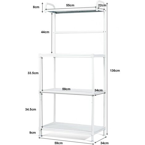 Platzprobleme? Dieses vielseitige 4-stufige Regal schafft Abhilfe! Mit den Maßen 66,5x39,2x59cm bietet es reichlich Stauraum für fast alles. Das Besondere: Die Höhe der einzelnen Ebenen ist verstellbar - so passt du das Regal genau deinen Bedürfnissen an. Ob in der Küche für Mikrowelle und Geschirr, im Büro für Drucker und Ordner oder im Wohnzimmer für Bücher und Deko - dieses Regal ist überall einsetzbar. Die Kombination aus Holzplatte und Metallrahmen garantiert Stabilität und Langlebigkeit, mit einer Tragkraft von satten 50 Pfund pro Ebene. Der Zusammenbau ist super einfach und in nur 30 Minuten erledigt. Die glatte Oberfläche ist kratzfest und leicht zu reinigen. Das schwarze Design passt zu jedem Einrichtungsstil, ob modern oder klassisch. Ein echter Allrounder für mehr Ordnung in deinem Zuhause oder Büro! Endlich alles schön organisiert und griffbereit.