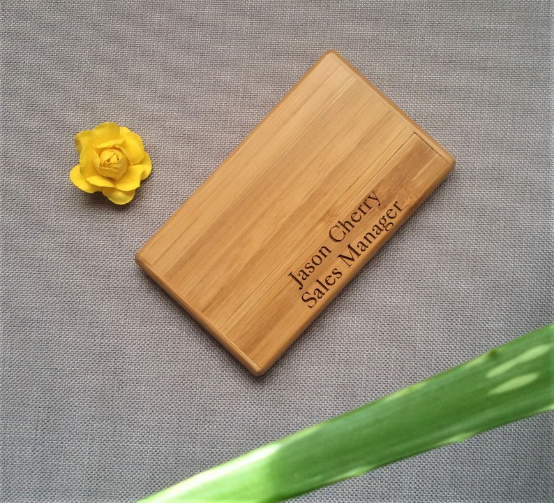 Mach deinen Schreibtisch zum echten Hingucker mit diesem personalisierbaren Visitenkartenhalter! Aus edlem Walnuss- und Buchenholz gefertigt, mit stylischen Metallakzenten - das sieht nicht nur professionell aus, sondern ist auch super praktisch.