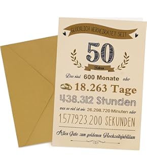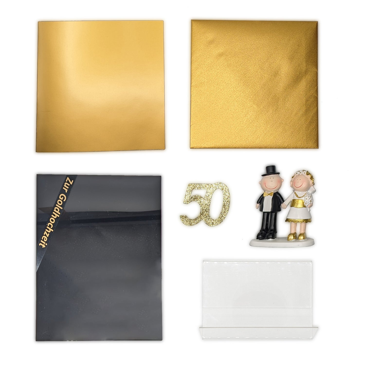 Zum goldenen Hochzeitstag etwas Besonderes verschenken! Dieses kreative Geldgeschenk aus Holz ist die perfekte Art, Geld stilvoll zu überreichen. Mit dem schönen \\\Alles Gute zum 50\\\-Design und Motiven wie Weingläsern und Ringen wird es zu einem bleibenden Erinnerungsstück. Einfach die Geldscheine in die vorgesehenen Löcher stecken und persönliche Wünsche hinzufügen. Auch als Tischdekoration bei der Feier ein echter Hingucker. Ein Geschenk, das von Herzen kommt!