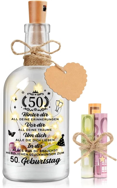 Zum 50. Geburtstag mal was Besonderes verschenken! Dieses handmade Holz-Geschenkset ist einfach einzigartig! Enthalten: Holzwunschkarte (13x9 cm, 4 mm dick) mit feinen Schnitzereien, transparentes Reagenzglas (10x1,5 cm) für Geldscheine oder Gutscheine, Hanfseil (35 cm), weiße Karte für persönliche Wünsche und Vintage-Kraftpapierumschlag. Alles aus natürlichen Materialien - nachhaltig und stylisch! Das Reagenzglas fasst Banknoten aller Stückelungen - kreative Geldgeschenk-Idee! Einfach zusammenbauen - keine zusätzlichen Einkäufe nötig. Perfekt für Frauen und Männer - der glückliche Jubilar wird begeistert sein! Auch für Hochzeiten, Weihnachten oder besondere Anlässe geeignet. Verpackt in einem Schritt - sofort verschenkfertig! Mach das Geschenk zu einem unvergesslichen Erlebnis! Einfach bestellen und Freude bereiten!