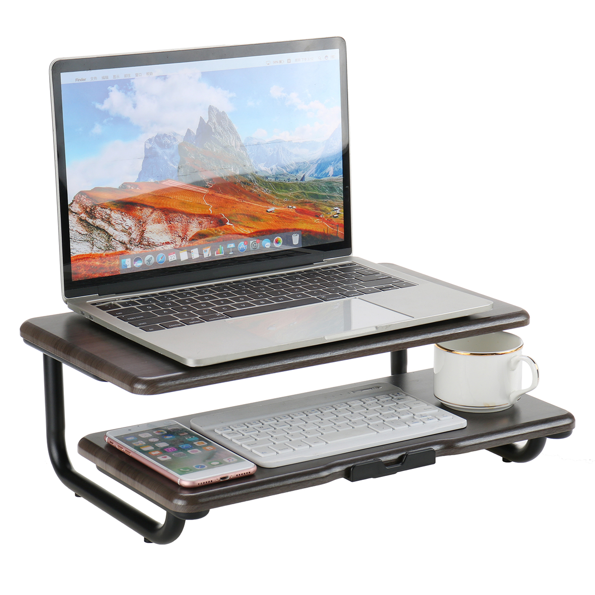 Rücken- und Nackenschmerzen ade! Dieser Monitorständer aus Holz bringt deinen Bildschirm auf die perfekte Höhe - für eine gesündere Sitzposition und mehr Komfort beim Arbeiten! \\n\\nMaße: 50cm x 20cm x 7,7cm - perfekt für die meisten Monitore und Laptops. Das hochwertige Holz ist super stabil und langlebig, hält also auch schwereren Geräten problemlos stand. \\n\\nFarbauswahl: Du hast die Wahl zwischen drei stylischen Farben!\\n• Purpurweiß (sieht je nach Licht weiß oder lavendelfarben aus - total interessant!)\\n• Klassisches Schwarz\\n• Natur-Holzfarbe für den rustikalen Look\\n\\nWarum brauchst du das? Ganz einfach!\\n• Entlastet Nacken und Augen\\n• Schafft Stauraum unter dem Monitor\\n• Hält den Schreibtisch ordentlich\\n• Passt zu jedem Einrichtungsstil\\n• Vielseitig für PC, Laptop oder sogar als TV-Ständer\\n\\nDer platzsparende Organizer maximiert deine Arbeitsfläche - unter der Plattform kannst du Tastatur, Notizen oder Kleinkram verstauen. So bleibt alles übersichtlich und du findest sofort, was du brauchst! \\n\\nEinfach den Monitor draufstellen und sofort von der besseren Ergonomie profitieren! Dein Rücken wird's dir danken - und du arbeitest konzentrierter und effizienter! \\n\\nHol dir diesen praktischen Helfer für deinen Arbeitsplatz - für mehr Komfort und Ordnung im Homeoffice oder Büro! 💻
