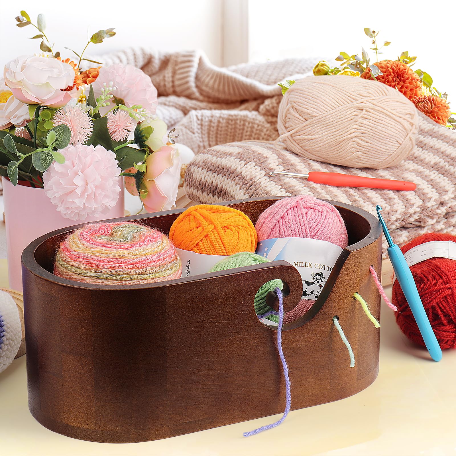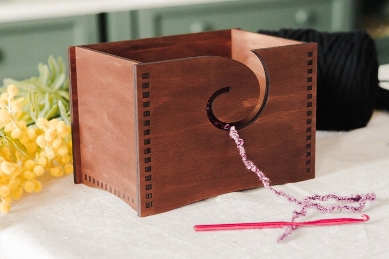 Super praktisch: Diese Garnschale aus natürlichem Holz hält deine Wollknäuel ordentlich an einem Platz und verhindert lästiges Wegrollen! Mit dabei sind 9 Häkelnadeln in den Stärken 2,0 bis 6,0 mm - alles, was du zum Stricken und Häkeln brauchst. 🧶 Das clevere Design mit Curl-Schlitz und zwei kleinen Löchern sorgt dafür, dass das Garn gleichmäßig abläuft und sich nicht verheddert. Perfekt, um deine Strickgeschwindigkeit zu erhöhen! Maße: 27x13,5x12 cm (Außen). Die Oberfläche ist glatt poliert, kratzt nicht am Garn und ist super schonend für deine Hände. Wenn du mal nicht strickst, kannst du die Schale auch zur Aufbewahrung von Süßigkeiten oder anderen Kleinigkeiten nutzen. Einfach in die Tasche stecken und überall mitnehmen - ob zuhause oder unterwegs. Ein ideales Geschenk für alle Strickfans! ✨