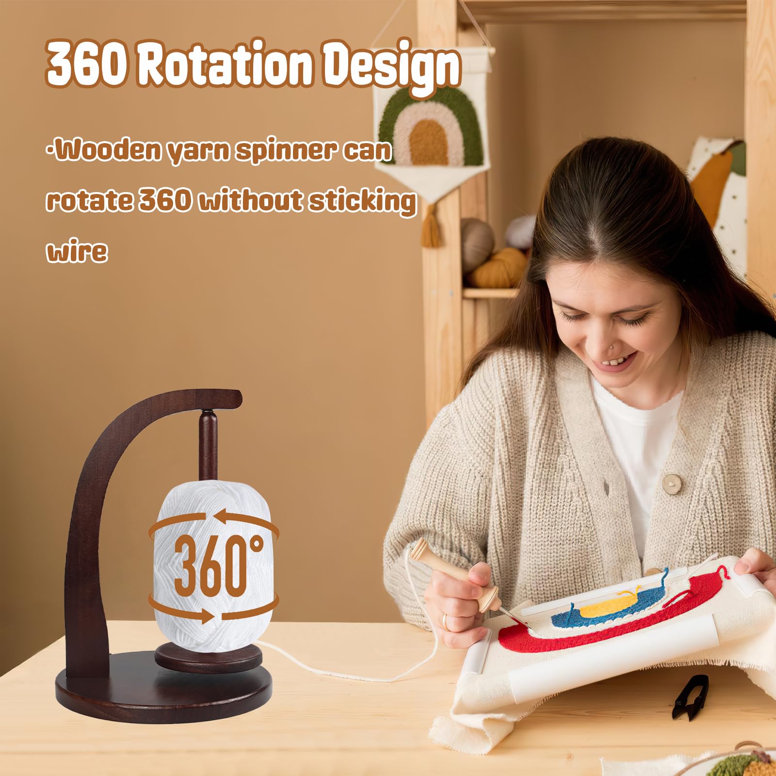 • Joyeee Häkelgarn-Halter Magnetisch - Holz Spinner Mit Aufbewahrung & Handy-Ständer