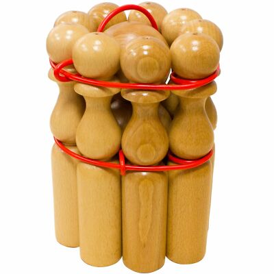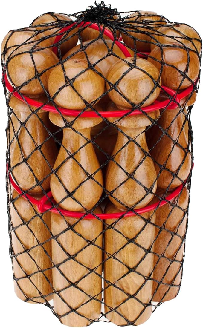 Klassisches Kneipenspiel für zu Hause! Dieses 11-teilige Set aus massivem Holz ist handgefertigt und super stabil. Enthält 9 Kegel, Basis und Schwingstange mit Kugel. Ca. 20cm hoch - perfekt für den Wohnzimmertisch. Auch bekannt als Teufel unter den Schneidern - ein echter Klassiker! Einfach den Ball um die Stange schwingen und die Kegel umwerfen. Macht Spaß für die ganze Familie - von Kindern bis Erwachsenen. Perfekt für Spieleabende oder gemütliche Stunden. Ein Stück Tradition für dein Zuhause. Einfach aufbauen und losspielen - wer wird Kegelmeister?