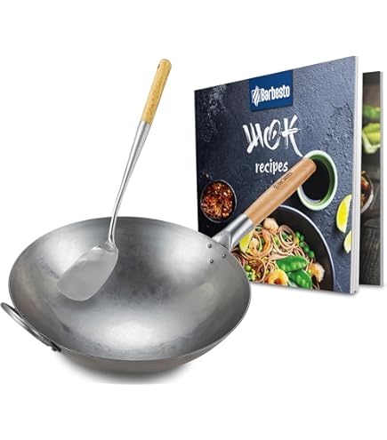Authentisches Wok-Erlebnis für zu Hause! Diese handgeschmiedete Eisenpfanne mit 24 cm Durchmesser und flachem Boden ist perfekt für Induktion, Elektro- und Gasherde. Mit praktischem Holzdeckel und Schaufel. Der natürliche Antihafteffekt durch die handgeschlagene Textur macht chemische Beschichtungen überflüssig. Der Holzgriff bleibt auch bei Hitze kühl. Ideal zum Braten, Dünsten und Pfannenrühren. Ein echter Küchenklassiker, der mit der Zeit immer besser wird und deinen Gerichten eine besondere Note verleiht!