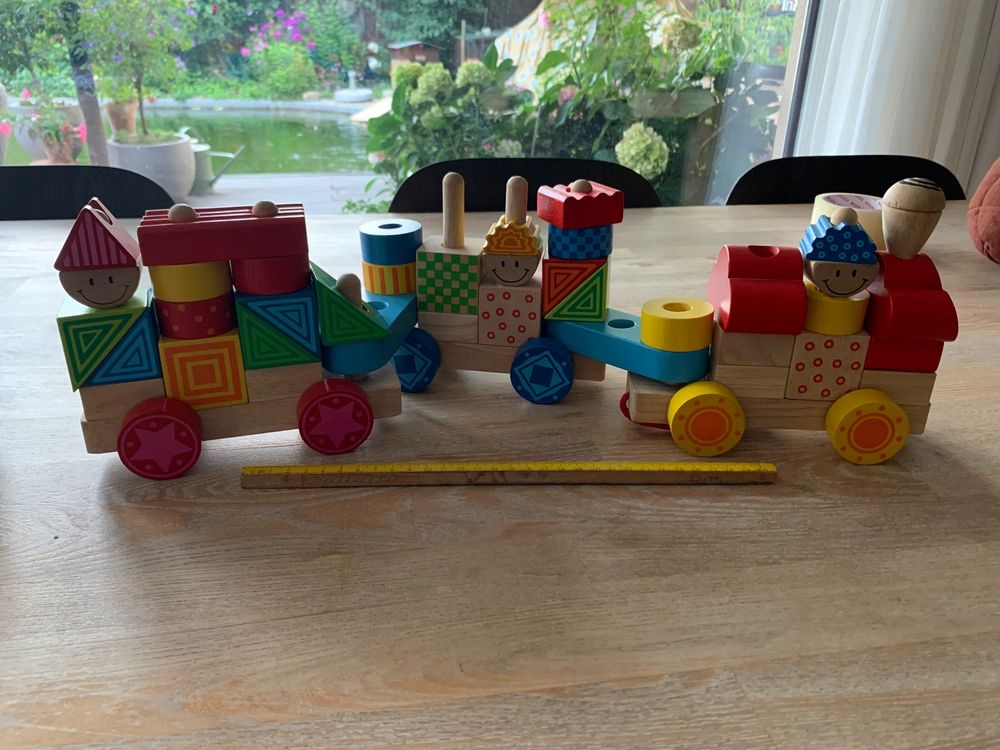 Oh, diese personalisierte Holzeisenbahn ist einfach nur süß! Die Jungle Jambo Bahn kommt mit Lokomotive, 2 Waggons und 5 Tieren: Krokodil, Giraffe, Elefant, Zebra und Gepard. Das Besondere: Wir gravieren den Namen deines Kindes mit modernster Lasertechnik direkt ins Holz - so wird aus einem schönen Spielzeug ein ganz persönliches Geschenk! Aus stabilem Holz mit abgerundeten Ecken - super sicher für kleine Kinderhände. Maße: ca. 40x11x7cm, Gewicht 530g. Dein Kind kann stundenlang spielen, dabei Motorik, Koordination und Fantasie trainieren. Perfekt für Geburtstage, Taufe, Weihnachten oder einfach so. Das Holz ist ein Naturprodukt - jede Bahn ist ein Unikat mit eigener Maserung. Einfach mit feuchtem Tuch abwischen und trocken nachwischen. Stell dir vor, wie sich dein Kind freut, wenn es seinen eigenen Namen auf der Lokomotive entdeckt! Die Tiere sind niedlich gestaltet und laden zum Geschichtenerzählen ein. Ein zeitloser Klassiker, der Generationen überdauert. Qualität made by Jollein - da weißt du, was du hast. Bestell noch heute und mach deinem Kind eine riesige Freude!