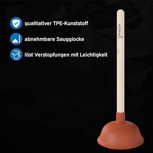 Eine verstopfte Toilette? Kein Problem mit diesem robusten Pümpel von TINEASUR! Mit doppelter Saugschicht und Holzgriff bringt er richtig Power – ob im WC, Waschbecken oder in der Dusche. Aus strapazierfähigem Gummi, leicht zu handhaben und langlebig. Einfach aufsetzen, drücken und ziehen – und die Verstopfung ist Geschichte. Ein Must-Have für jeden Haushalt! 🚽💪