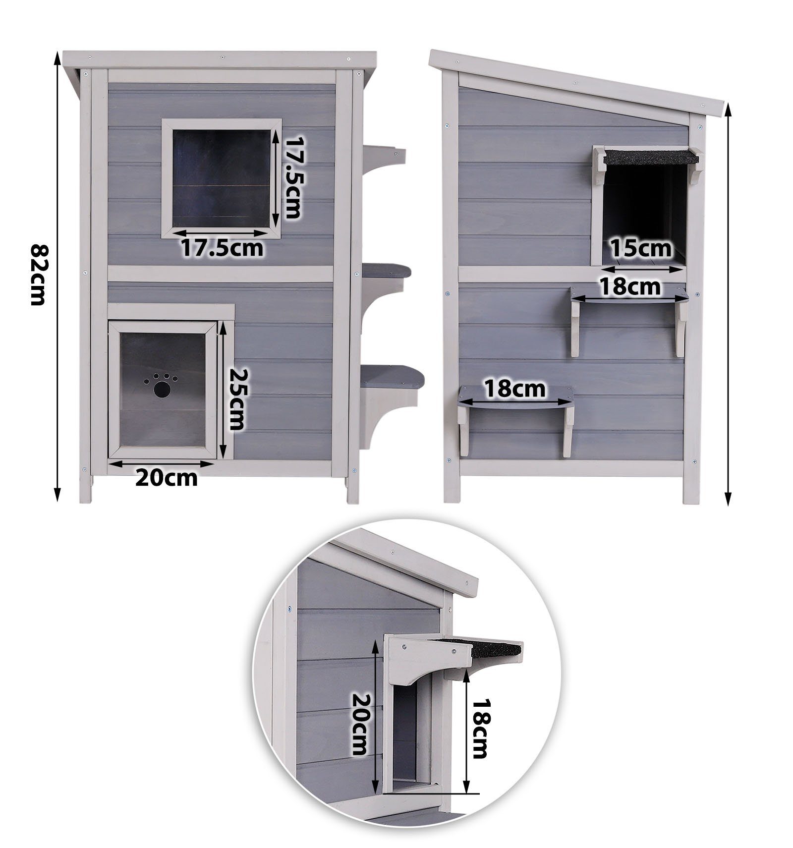 Deine Katze verdient ihr eigenes Reich! Das Furpal Outdoor-Katzenhaus ist der perfekte Rückzugsort für deine Samtpfote - ob im Garten, auf dem Balkon oder der Terrasse. Aus robustem Tannenholz mit wasserabweisendem Bitumendach hält es Regen, Wind und Kälte stand. Das klappbare Dach macht die Reinigung super einfach, und die integrierte Rampe erleichtert vor allem älteren Katzen den Ein- und Ausstieg. Mit 51×40×43,5 cm perfekt dimensioniert für Katzen, aber auch ideal für Igel, Kaninchen und andere Kleintiere. Die Kunststofffüße schützen vor Bodenfeuchtigkeit, und mit nur 5,5 kg ist es leicht zu transportieren. Dein Tier hat so immer einen gemütlichen, geschützten Platz - Sommer wie Winter!