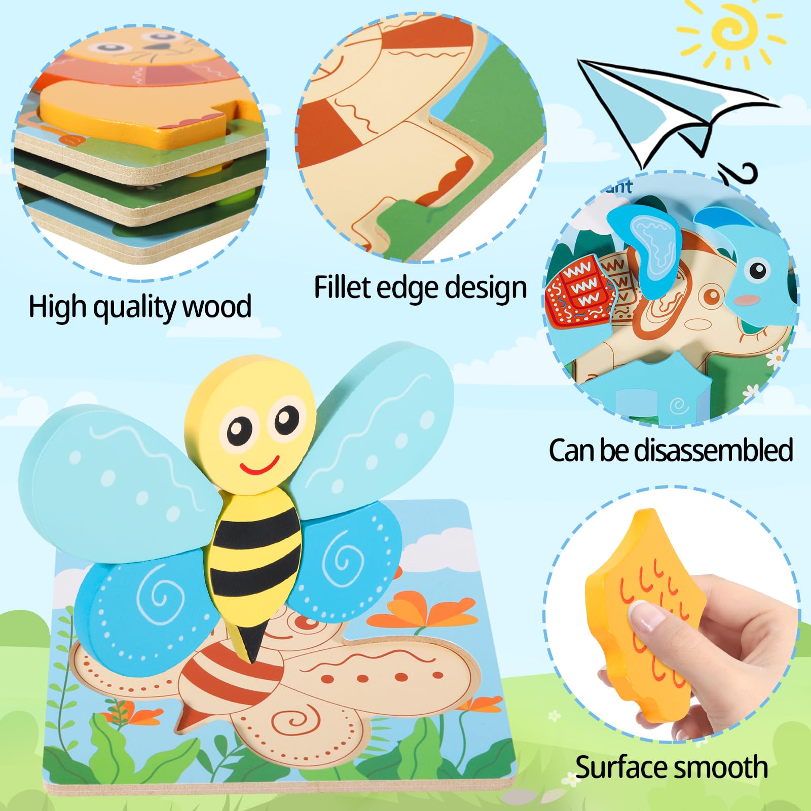 So macht Lernen Spaß! Dieses 6-teilige Holzpuzzle-Set mit süßen Tiermotiven (Dinosaurier, Delphin, Giraffe, Bär, Raupe, Elefant) und Zahlen ist perfekt für kleine Entdecker. Aus robustem, glatt geschliffenem Holz ohne scharfe Kanten. Mit ungiftigen, wasserbasierten Farben - absolut sicher für Kinder. Jedes Puzzle 21,5x10,5x1cm - ideal für kleine Hände. Fördert Feinmotorik, Geduld und logisches Denken. Aber Achtung: Nicht unter 3 Jahren wegen verschluckbarer Kleinteile! Perfektes Geschenk für neugierige Kids!