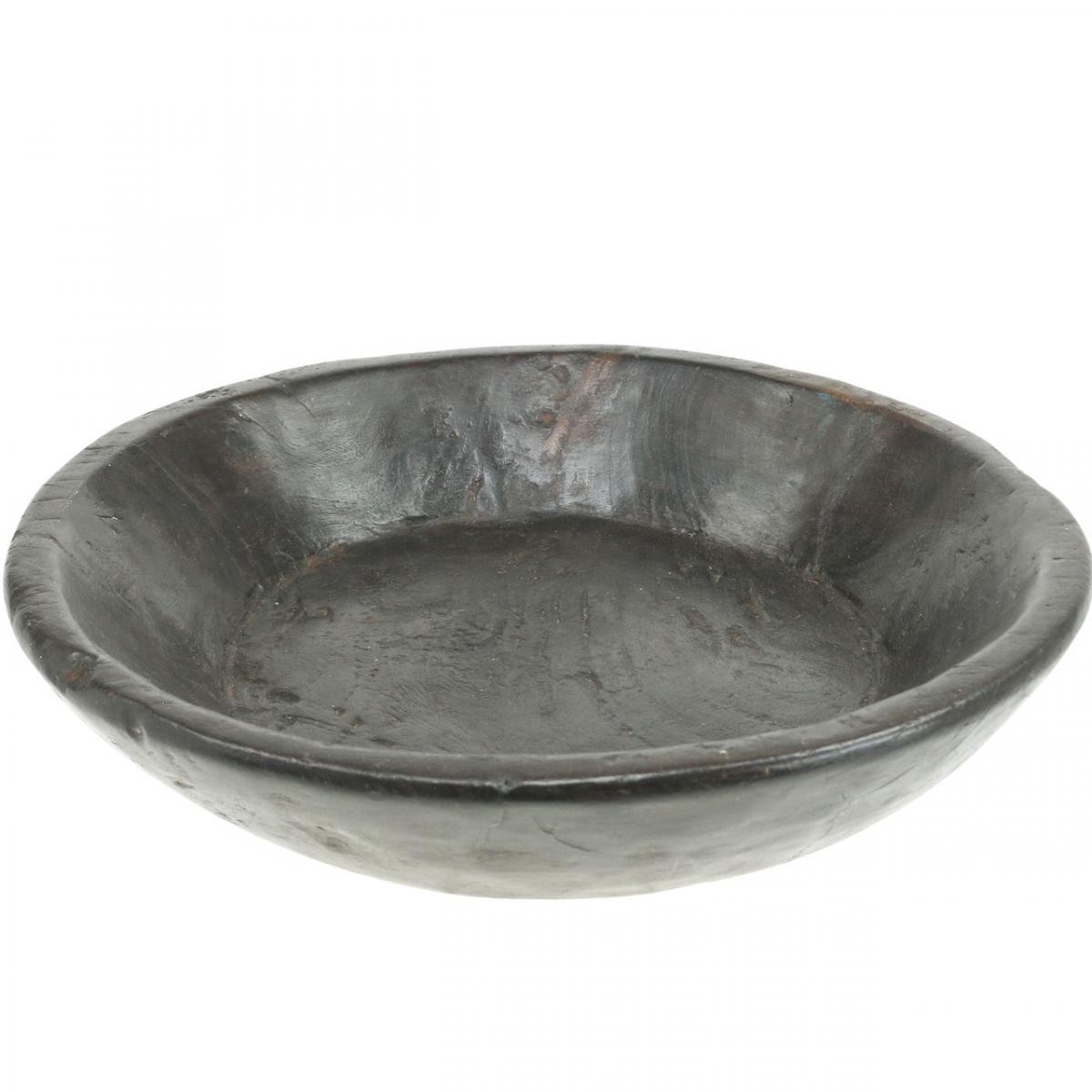 Da Holz ein Naturprodukt ist, hat jede Schale ihre eigene einzigartige Maserung und Farbe - das macht sie besonders! Dunkelbraun und naturbelassen, ca. 0,7kg schwer. Maße: Ø außen 30cm, Ø innen 27cm, Höhe 9,5cm.