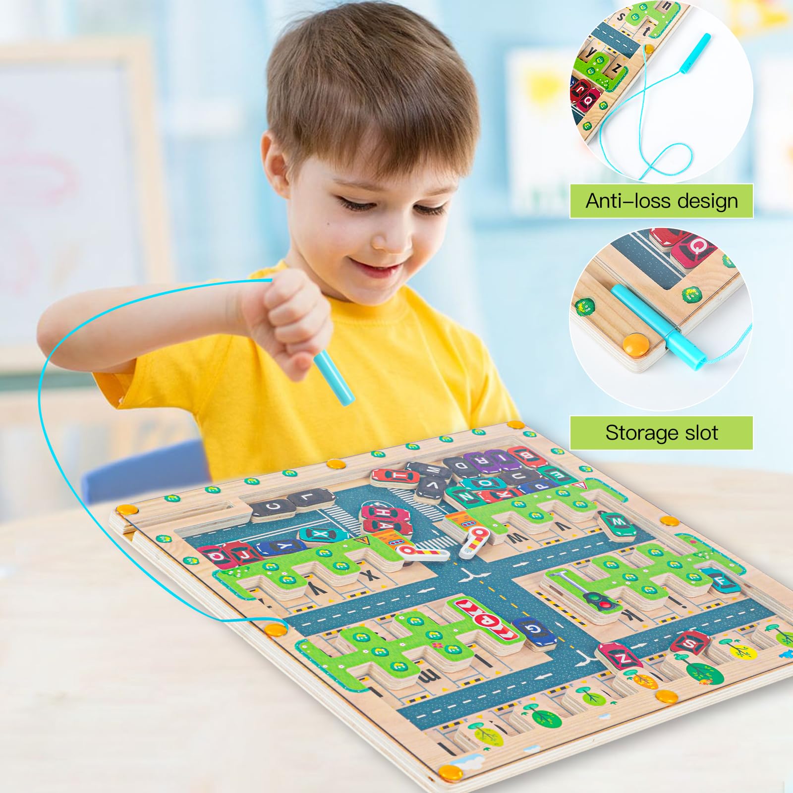 Wow, dieses magnetische Alphabet-Labyrinth ist einfach genial für kleine Entdecker! 🤩 Ab 3 Jahren können Kinder hier spielerisch das ABC lernen - und das macht sogar richtig Spaß! Das bunte Holzspielzeug zieht sofort die Aufmerksamkeit auf sich und die magnetischen Elemente sind einfach faszinierend.