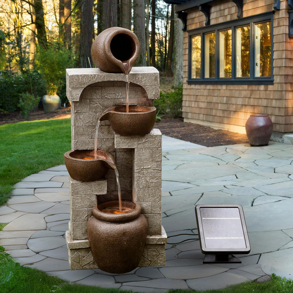 • Teamson Home Garten Brunnen Modern - Ovaler Wasserspiele Mit LED-Beleuchtung