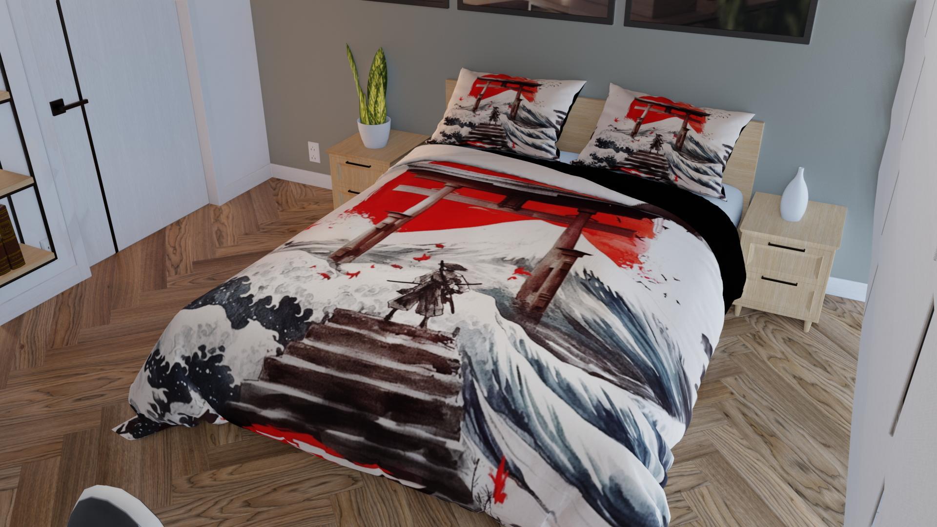 Homemissing Japanische Bettwäsche 155x220cm - Ukiyoe Design 100% Baumwolle
