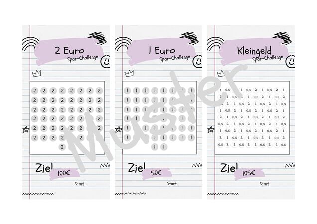 Sparen mal anders! Dieses Set mit 30 Challenges hilft dir, spielerisch Geld zu sparen. Von kleinen 40€-Challenges bis zu größeren über 300€ - insgesamt sparst du so 3.555€!