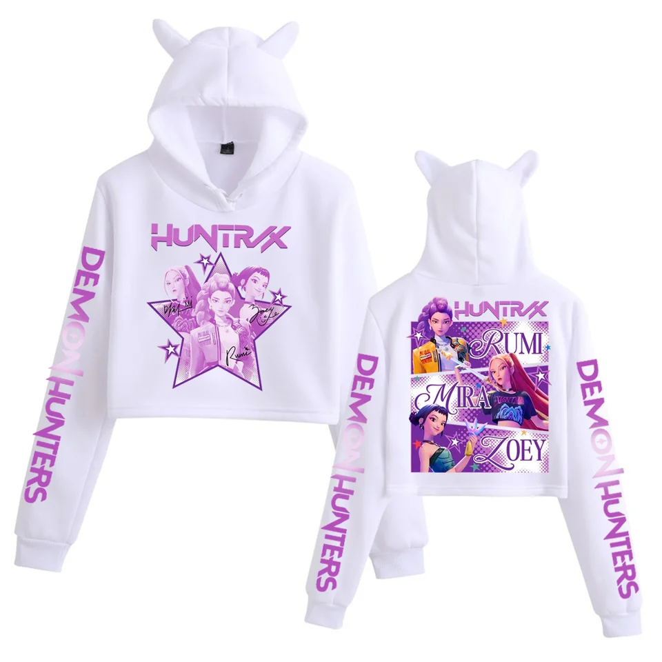YiJee KPop Demon Hunters Hoodie Damen - Crop Kapuzenpullover Mit Katzenohren