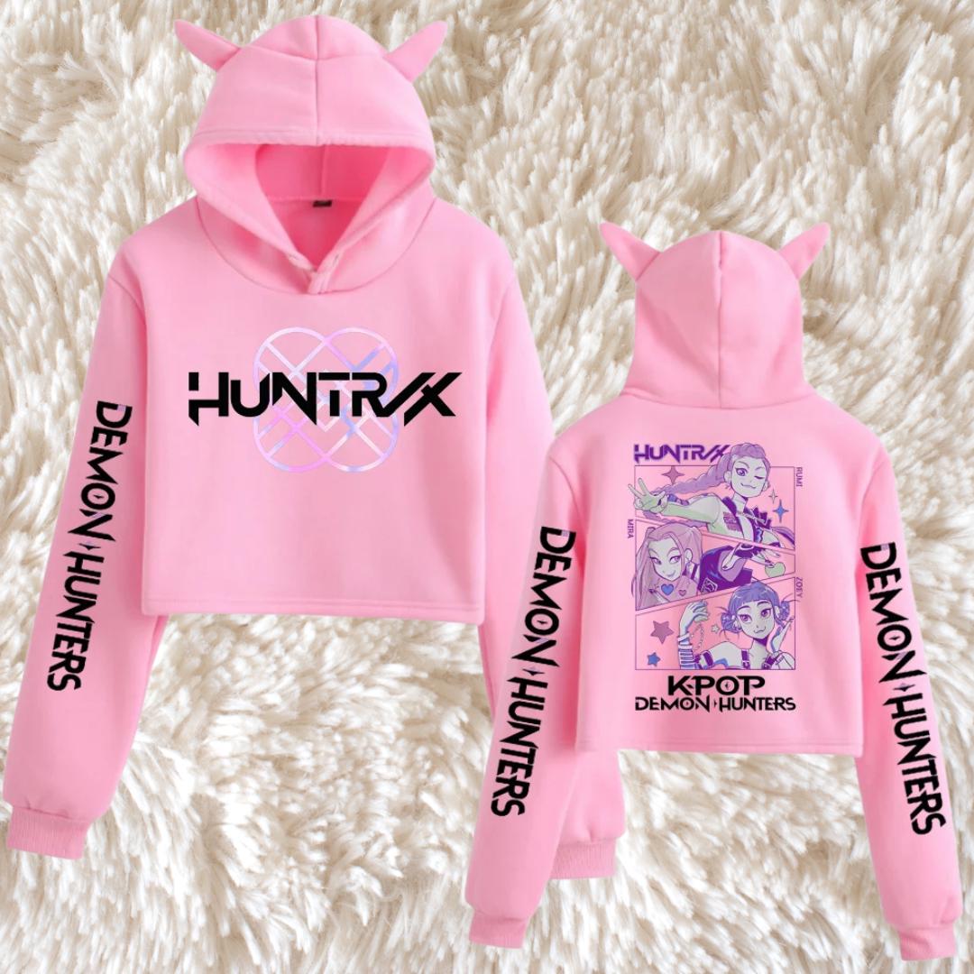 Hey K-Pop Fans! Dieser Demon Hunters Hoodie ist einfach nur der Hammer! Mit den süßen Katzenohren an der Kapuze und dem coolen Anime-Druck wirst du zum absoluten Hingucker.