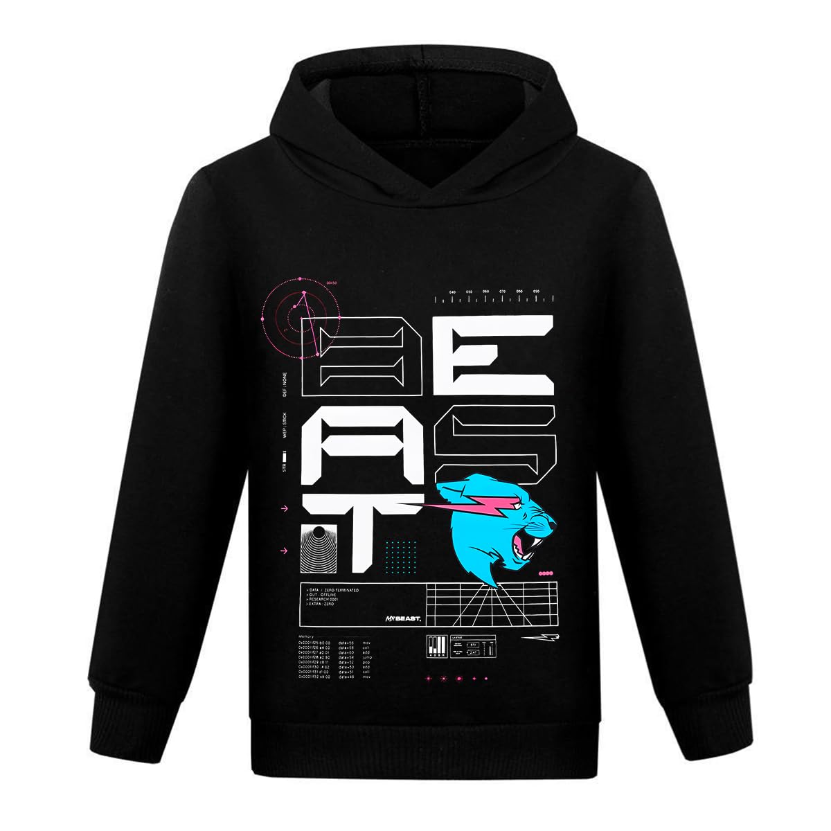 Alter, das ist ja der hammer Hoodie für alle MrBeast Fans! Das Beast Games Sweatshirt in klassischem Schwarz zeigt das ikonische Logo mit dem wilden blauen Panther - vorne und hinten. Die weiße und türkise Schrift knallt richtig gut raus. Mega bequem ist er auch, mit weichem Stoff, gemütlicher Kapuze und praktischer Kangurutasche. Die gerippten Bündchen sorgen für perfekten Sitz. Ob beim Zocken, in der Schule oder einfach so rumhängen - damit bist du immer stylisch unterwegs. In verschiedenen Jugendgrößen erhältlich, also für jeden jungen Gamer was dabei. Und keine Sorge: Waschmaschinenfest ist er auch, die Prints bleiben schön erhalten. Zeig allen, dass du zur Beast Games Community gehörst! Echt cool als Geburtstagsgeschenk oder einfach so - Hauptsache, du fühlst dich wohl in deiner Gaming-Kluft.