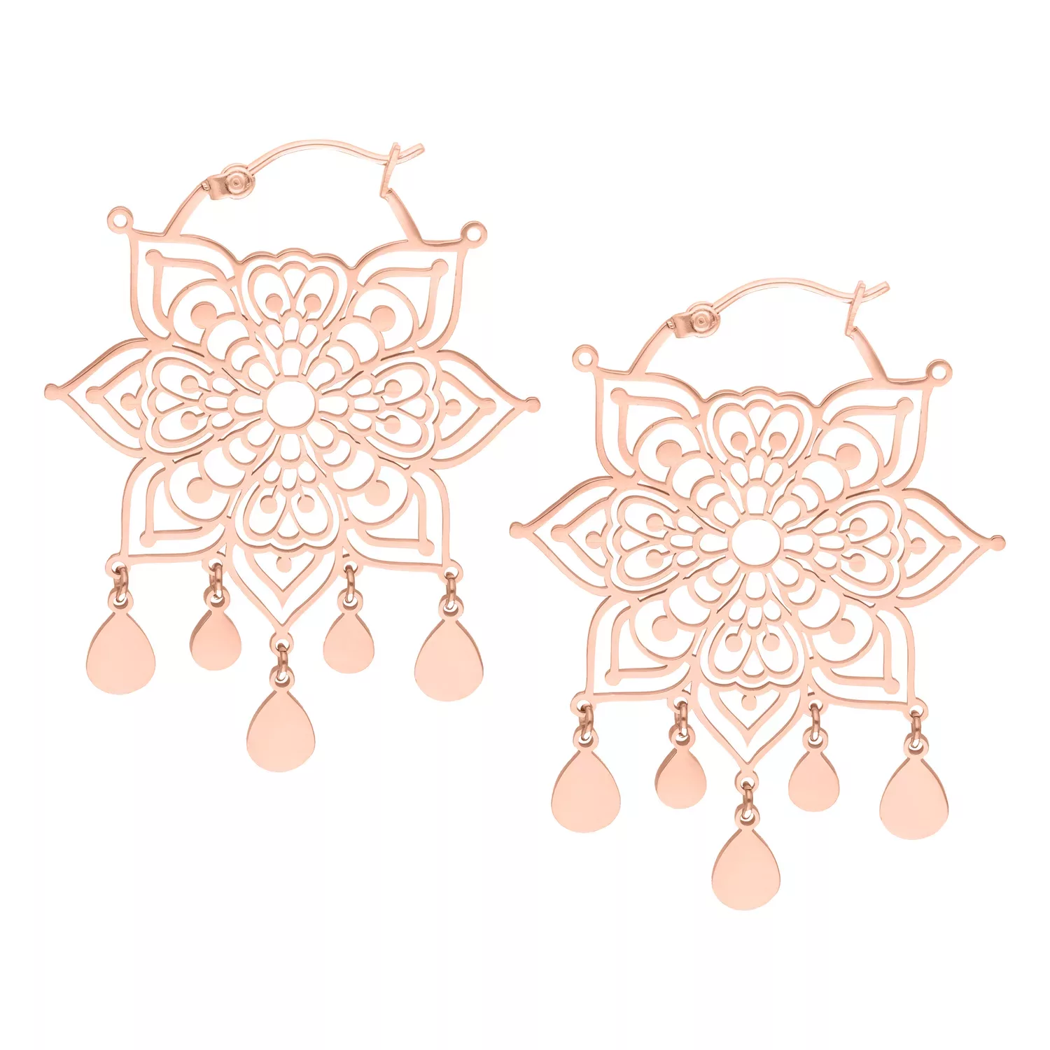 Die High-End PVD Beschichtung sorgt dafür, dass die Farbe der Ohrringe auch nach langer Tragezeit nicht abblättert oder verblasst. So hast du lange Freude an deinem neuen Lieblingsschmuck. Die filigranen Mandala-Muster sind perfekt gearbeitet und reflektieren das Licht in ganz besonderer Weise.