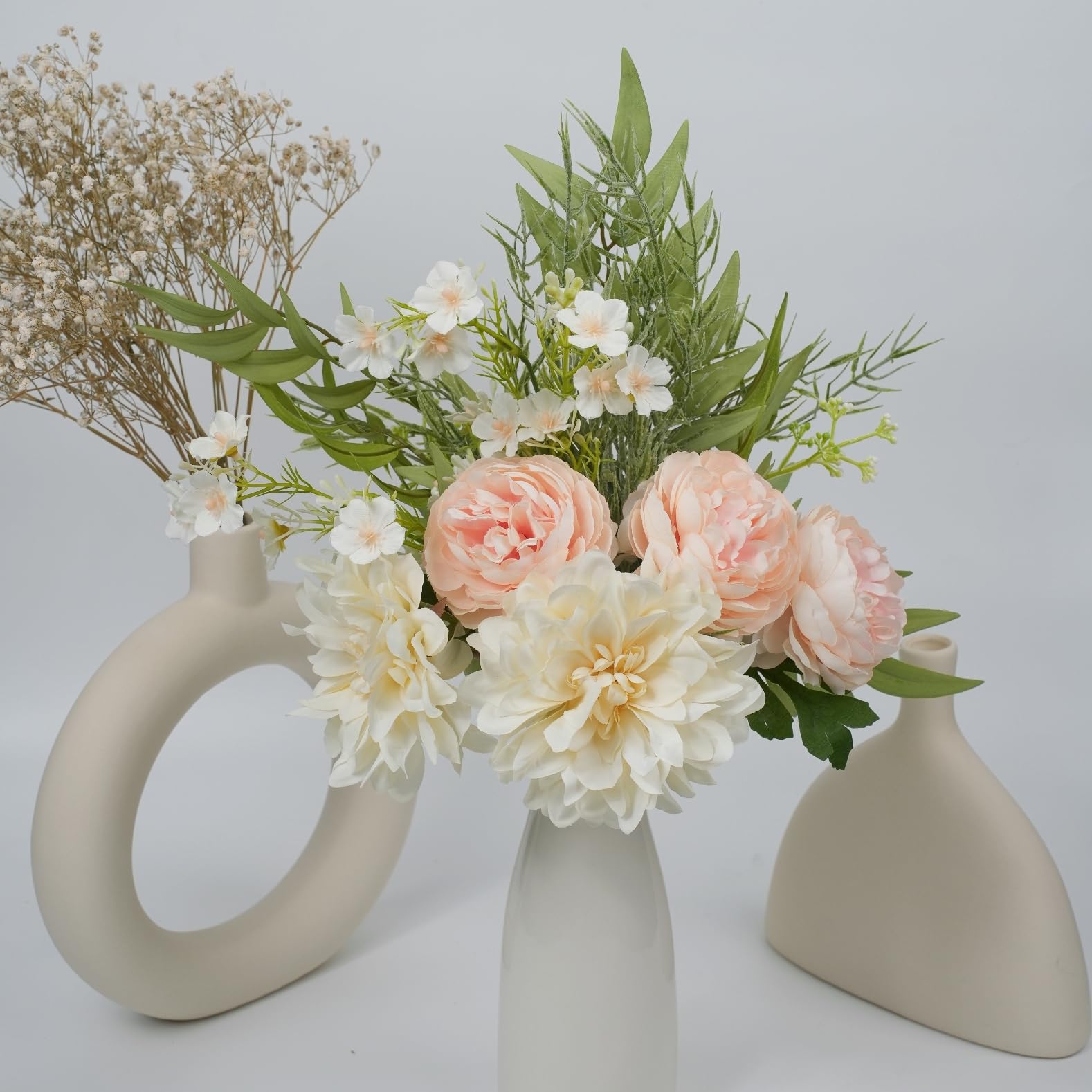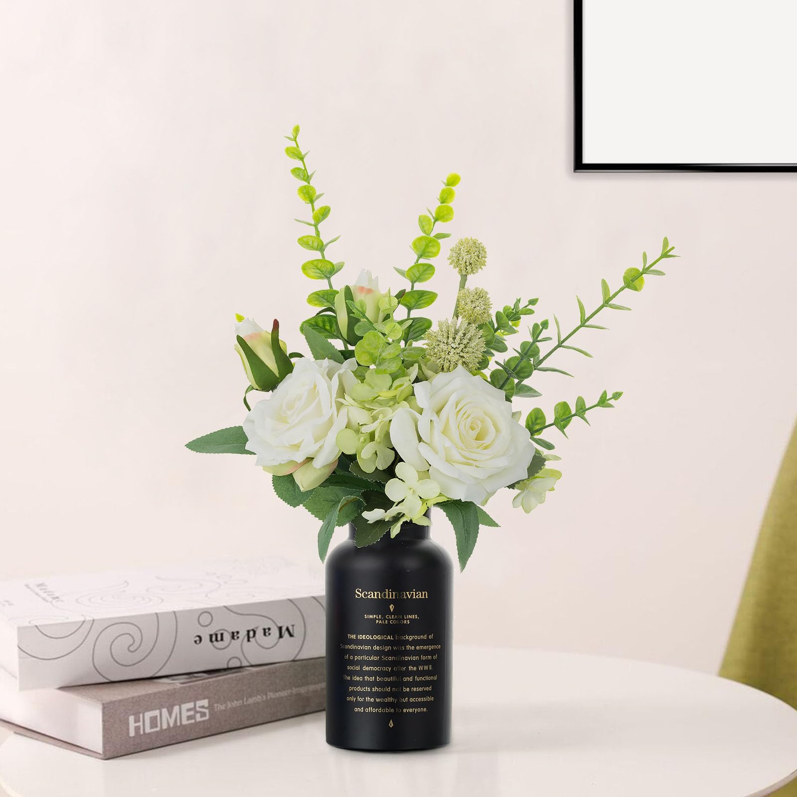 Blühende Schönheit ohne Gießen und Pflege! Dieser kunstvolle Hortensienstrauß in eleganter Glasvase bringt frischen Frühlingsflair in dein Zuhause. Die ca. 35 cm lange Arrangement besteht aus täuschend echten weißen Rosen, Hyazinthen, Hortensien und dekorativen Strauchblättern. Das Klarglas mit hölzernem Herzanhänger ist bereits im Lieferumfang enthalten - einfach auspacken und sofort dekorieren! Im Gegensatz zu frischen Blumen welken diese Kunstblumen nie, verlieren keine Blätter und brauchen kein Wasser. Perfekt für alle, die Pflanzen lieben aber keine Zeit für Pflege haben. Du kannst die Zweige individuell biegen und anpassen, um dein perfektes DIY-Arrangement zu kreieren. Ob als Tischdekoration im Wohnzimmer, als Hochzeitsdeko, fürs Büro oder als Bauernhaus-Deko - diese Kunstblumen sind vielseitig einsetzbar und sehen zu jeder Jahreszeit frisch aus. Ein wunderbares Geschenk für Weihnachten, Geburtstage oder einfach als Überraschung für liebe Menschen!