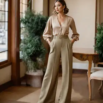 Damen Hosenanzug Elegant - Zweiteiler Mit Musselin Bluse & Hose