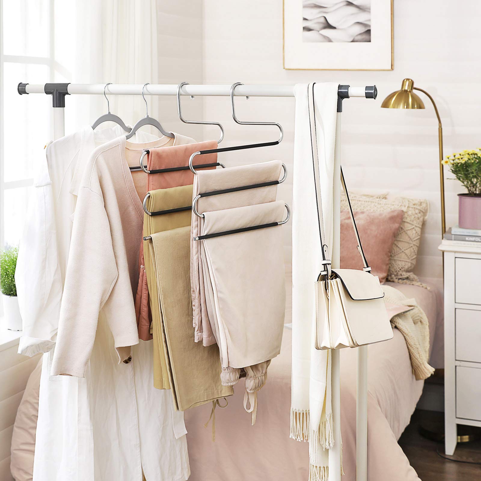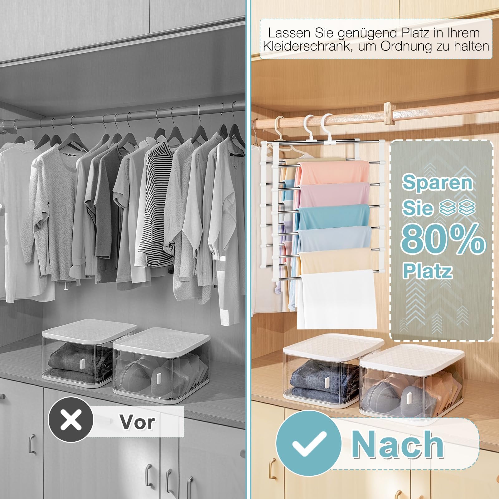 Platzproblem im Kleiderschrank? Diese Hosenbügel aus Edelstahl sind die Lösung! Im 2er-Set kannst du bis zu 12 Kleidungsstücke auf dem Platz von nur zwei normalen Bügeln unterbringen. Perfekt für kleine Wohnungen, WG-Zimmer oder enge Schränke.