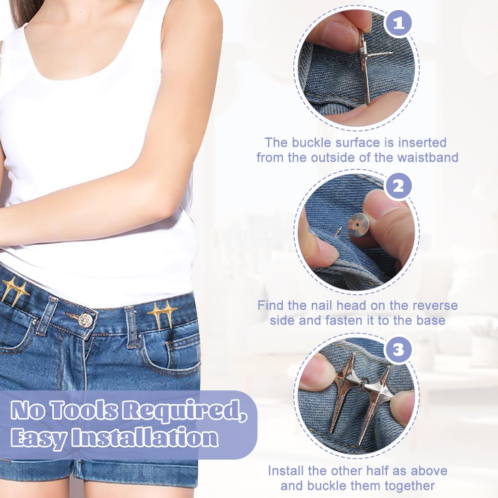 Deine Jeans ist zu weit geworden? Diese praktischen Clips machen den Bund wieder perfekt passend - ohne Nähen! Im Set sind 12 Stück in verschiedenen Farben: Gold, Silber, Bronze und Rotguss. Aus hochwertiger Zinklegierung - rostfrei und super stabil. Einfach anbringen: Clip auf den Bund drücken, fertig! Hält bombenfest und fällt nicht ab. Perfekt für Jeans, Hosen, Röcke und Shorts - wenn mal etwas zu weit ist. Besonders praktisch nach Gewichtsverlust oder bei Second-Hand-Kleidung. Die Clips sehen nicht nur funktionell aus, sie sind auch noch dekorativ! Einfach zu entfernen und wiederverwendbar. Ideal als Geschenk für Freundinnen oder Familienmitglieder - wer kennt das Problem nicht? Endlich müssen keine Kleidungsstücke mehr weggeworfen werden, nur weil sie nicht mehr perfekt sitzen! Ein echter Lifehack für jeden Kleiderschrank.