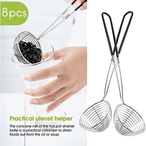 Perfekt für gemütliche Hot Pot Abende! Dieses 6-teilige Set aus hochwertigem Edelstahl (SUS304) macht jedes Fondue zum Erlebnis. Enthalten sind 3 Sieblöffel und 3 Suppenkellen - alles was du für chinesisches Huoguo oder japanisches Shabu Shabu brauchst. Die Löffel sind 26cm lang mit 7cm Schüssel-Durchmesser, sodass du bequem Fleisch, Gemüse und Meeresfrüchte aus der Brühe fischen kannst. Die siebartigen Löffel lassen Flüssigkeit abtropfen, die Schöpfkellen sind perfekt für Suppe. Absolut lebensmittelecht, spülmaschinengeeignet und rostfrei. Super für Partys, Familienabende oder Restaurant-Einsatz. Macht nicht nur praktisches Kochen möglich, sondern sieht auch noch stylisch aus!