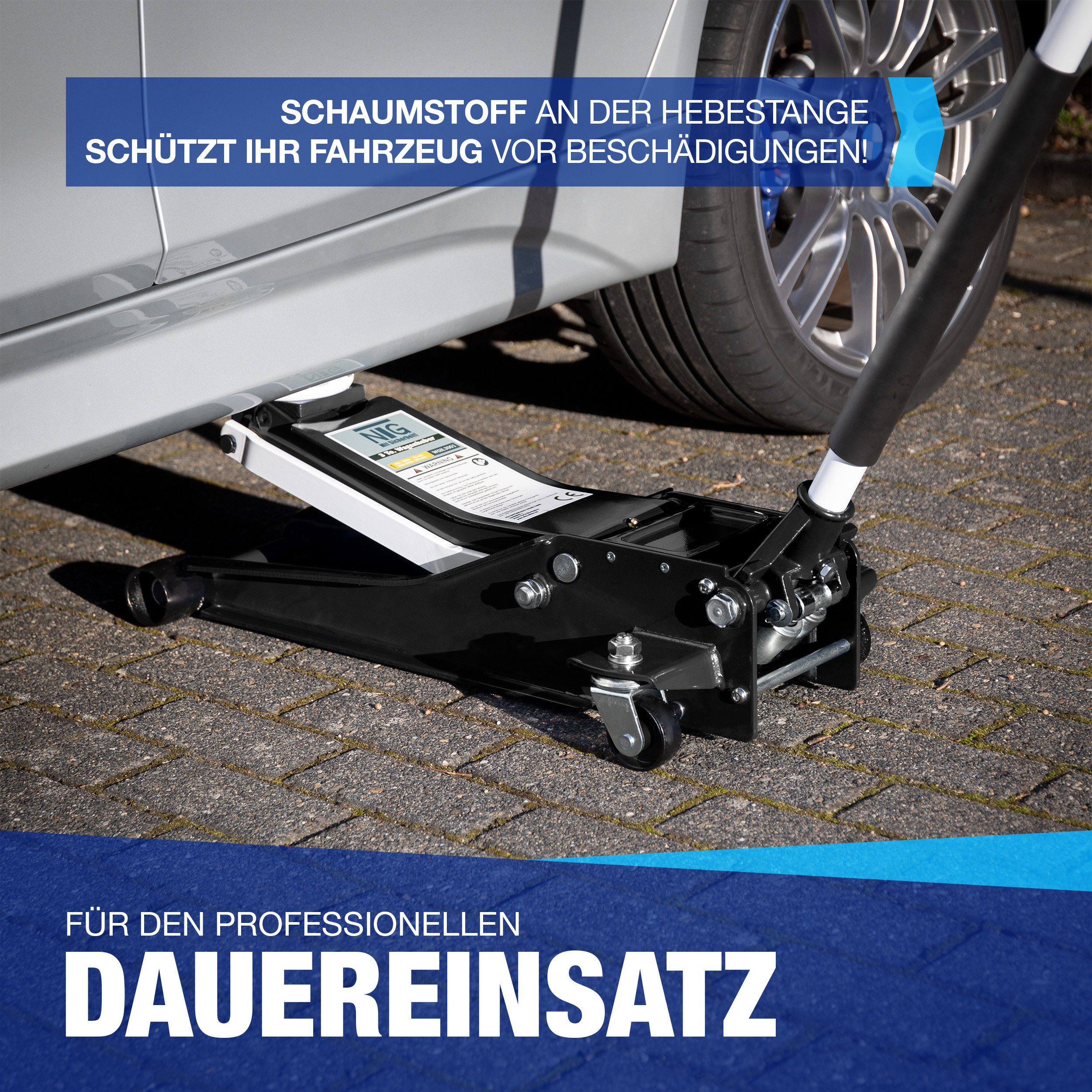 Schweizer Qualität seit 1979! Dieser KRAFTWERK Rangierwagenheber ist ein echter Profi für jede Werkstatt. Mit 2 Tonnen Tragkraft hebt er so ziemlich jedes Auto problemlos an. Die Hubhöhe von nur 85mm bis 380mm ist perfekt für niedrige Sportwagen und normale Fahrzeuge. Die Gummiunterlage schont euren Fahrzeugboden - keine Kratzer mehr beim Heben! TÜV/GS geprüft bedeutet: Absolute Sicherheit steht an erster Stelle. Der hydraulische Mechanismus arbeitet super smooth - schnelles Anheben, kontrolliertes Absenken. Robustes Design, das jahrelang hält. Perfekt für Reifenwechsel, Bremsenarbeiten oder andere Reparaturen unter dem Auto. Die kompakten Maße (75x50x25 cm) machen ihn leicht verstaubar. Ein echter Allrounder für jede Garage - ob Hobby-Schrauber oder Profi. Einfach unter das Auto schieben, pumpen und sicher arbeiten! Qualität, auf die man sich verlassen kann.