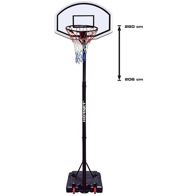 Basketball-Spaß für die ganze Familie! Der Hudora Hornet XXL ist der Riese unter den Basketballkörben und kann von 260 bis 305 cm Höhe eingestellt werden - perfekt für Kinder und Erwachsene! Mit zwei praktischen Rädern lässt er sich super einfach im Garten verschieben. Der stabile Standfuß wird einfach mit Wasser oder Sand befüllt (ca. 28,7 Liter) und gibt sicheren Halt. Das große Board misst 70x110 cm - genau richtig für präzise Würfe! Mit Metallring und robustem Netz für authentisches Spielgefühl. Die pulverbeschichtete Stange ist absolut wetterfest und hält auch bei Regen problemlos durch. Extra Verstrebungen sorgen für zusätzliche Stabilität. Einfach aufbauen und sofort losspielen! Perfekt für den Garten, die Einfahrt oder den Park. Mach deine Kinder zu Basketball-Stars - Bestell jetzt den ultimativen Spielspaß!