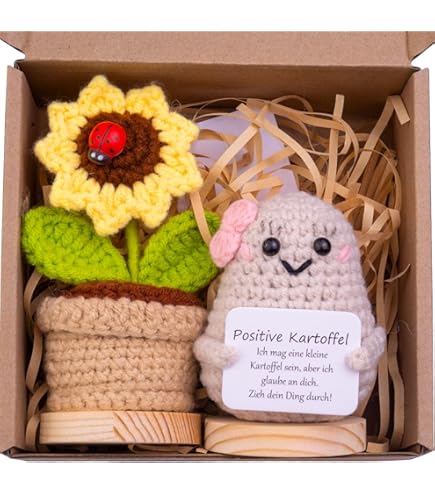 So niedlich! Diese handgestrickte Kartoffel-Puppe bringt positive Energie und ein Lächeln ins Gesicht. Nur 8x5,5cm groß - passt in jede Tasche und ist immer dabei. Mit dabei: eine positive Energiekarte und ein kleiner Umarmungs-Glücksbringer. Perfekt als Mutmacher für schwierige Tage oder als liebevolle Aufmerksamkeit. Ob als Geburtstagsgeschenk, zur Einschulung oder einfach so - diese süße Kartoffel wärmt das Herz. Aus weicher Wolle und Baumwolle handgefertigt - jedes Stück ein Unikat! Schenk deinen Liebsten eine kleine Umarmung für unterwegs - Wärme und Trost immer griffbereit!