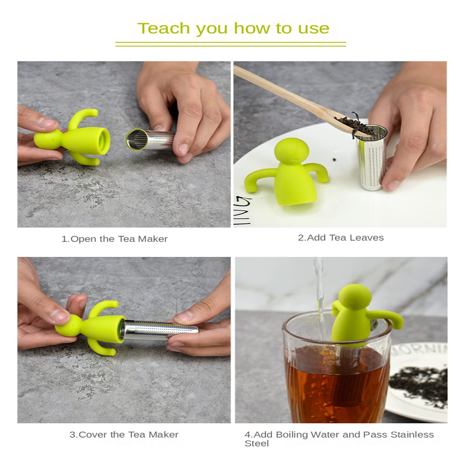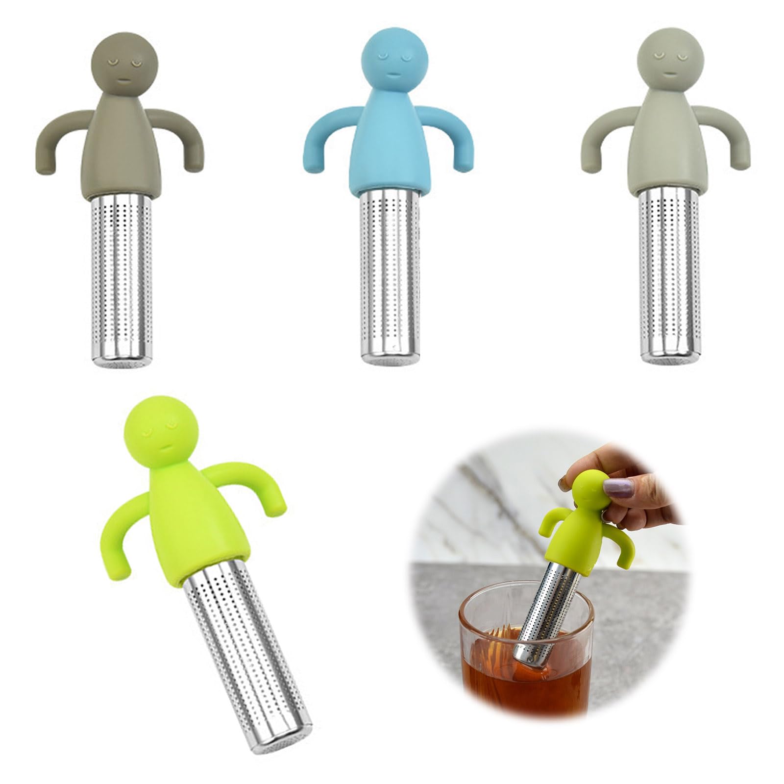 Tee-Liebhaber aufgepasst! Diese beiden niedlichen Teesiebe in Blau und Grün machen die Tee-Zubereitung zum Vergnügen. Aus lebensmittelechtem Edelstahl 304 und mit BPA-freiem Silikongriff sind sie absolut sicher und geschmackneutral. Die feinen Filterlöcher halten selbst kleinste Teeblätter zurück, lassen aber das Aroma perfekt entfalten. Der lange Griff schützt deine Finger vor heißem Wasser - super praktisch! Mit 11 cm Länge passen sie in fast jede Tasse oder Teekanne. Einfach befüllen, aufbrühen, genießen - und hinterher leicht reinigen. Perfekt als Geschenk für Tee-Fans oder zum Selbstbehalten. Diese Siebe sind nicht nur funktional, sondern sehen auch noch total niedlich aus!