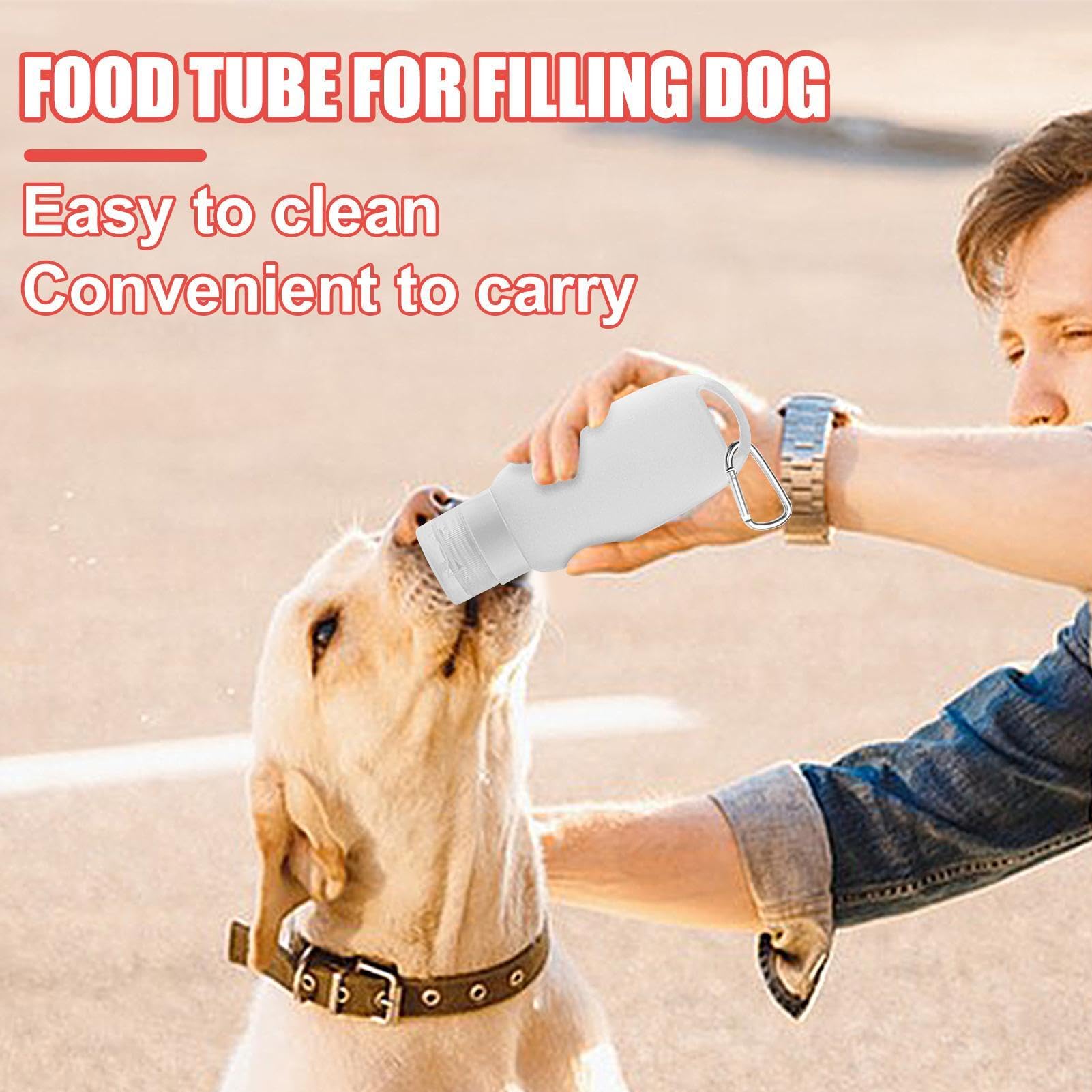 Für alle Hundebesitzer, die unterwegs Leckerlis dabei haben wollen: Dieses 4er-Set Silikon-Futtertuben ist total praktisch! Die 90ml Flaschen haben eine extraweite Öffnung - da geht nichts daneben und Verstopfungen sind passé.