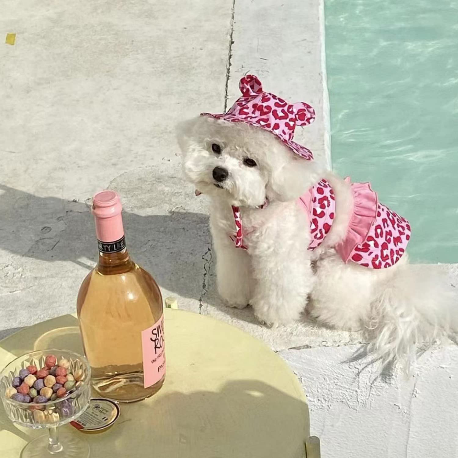 Wie süß ist denn das? Dieser Hunde-Bikini mit Blumendruck ist perfekt für kleine Hunde bis 5 kg! Aus weichem, hautfreundlichem Polyester, atmungsaktiv und bequem. Ideal für Pudel, Teddydogs, Bichons und andere kleine Rassen. Mit verstellbarem Nackenriemen für die perfekte Passform. Super als Foto-Requisit, für Partys, Bühnenauftritte oder einfach nur für niedliche Fotos. In 4 Größen erhältlich (inklusive XS) und in Pfirsich-Farbe. Wichtig: Nur die Kleidung ist im Lieferumfang, anderes Zubehör auf den Bildern nicht dabei!