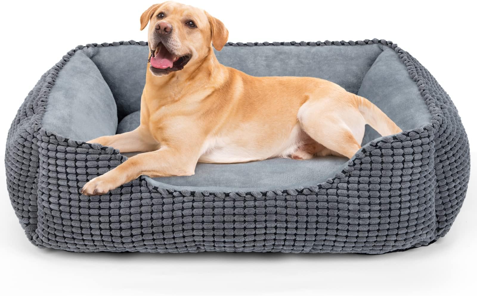 Dein Vierbeiner wird dieses kuschelige Hundebett lieben! Das BEDSURE Hundebett in 59x43 cm ist perfekt für mittelgroße Hunde und sogar katzenfreundlich. Aus superweichem Wolle-Stoff gefertigt, der sich hautfreundlich anfühlt und für gemütliche Polsterung sorgt - ideal für erholsamen Schlaf. Die plüschige Polyfil-Baumwollfüllung gibt genau die richtige Dicke, wenn sich dein Liebling ausruhen möchte. Praktisch: Die Unterseite hat Gumminoppen, die verhindern, dass das Bett auf glatten Böden verrutscht. Das weiche Fleece-Futter ähnelt einer kuscheligen Hundedecke und beruhigt ängstliche Tiere. Und das Beste: Vollständig maschinenwaschbar! Einfach in kaltem Wasser waschen und bei niedriger Temperatur trocknen - so bleibt das Bett immer frisch und sauber. Fünf verschiedene Größen stehen zur Auswahl, passend für alle Rassen. Wichtig: Nicht für Haustiere mit Kauverhalten geeignet. Schaff deinem pelzigen Freund seinen eigenen Wohlfühl-Bereich!
