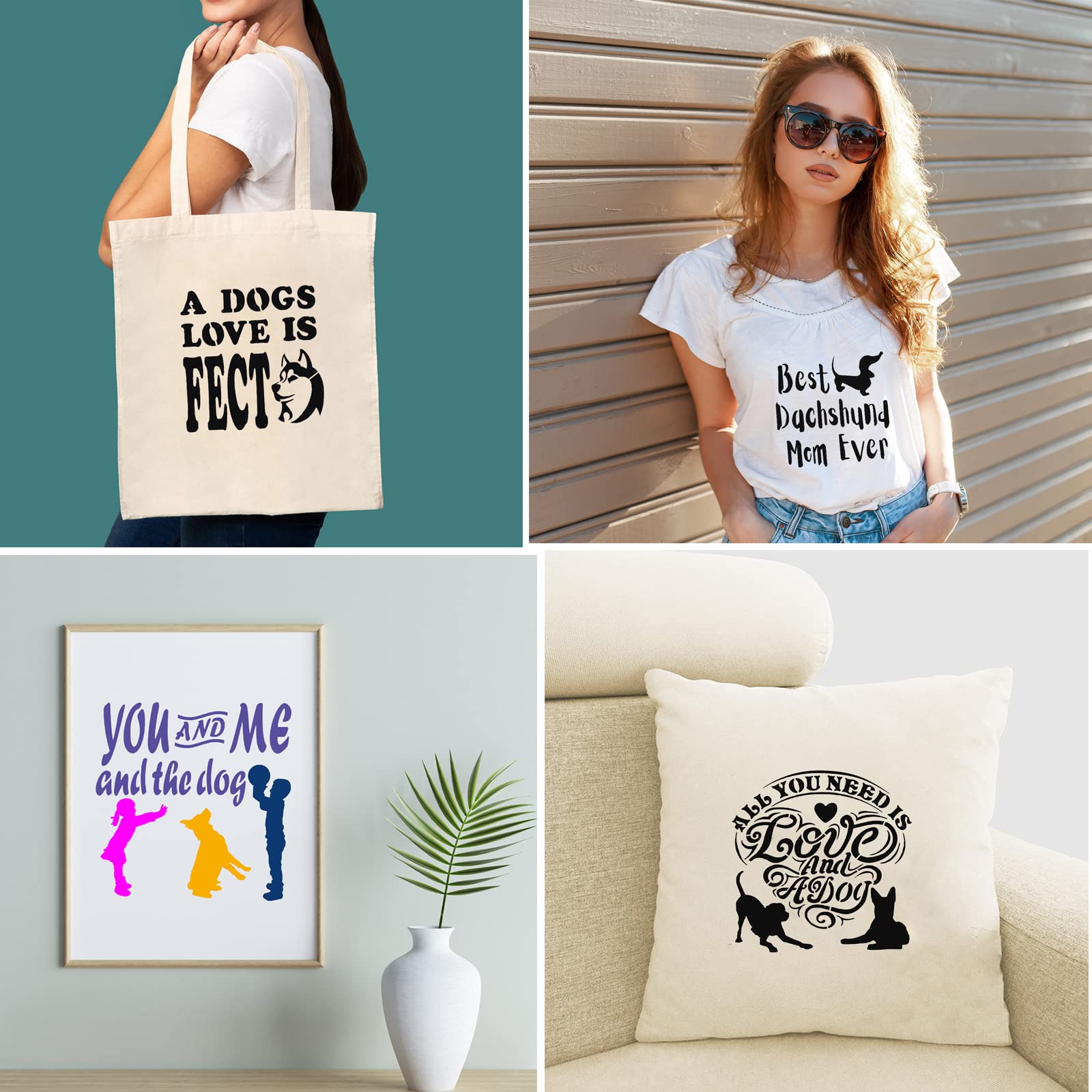 Kreativ werden mit niedlichen Hundemotiven! Dieses 9er Set enthält Schablonen verschiedener Hunderassen - Golden Retriever, Dobermann, Teddy und mehr. Aus flexiblem PET-Material, langlebiger als normale Plastikschablonen. Größe 20x20cm mit abgerundeten Ecken für sicheres Arbeiten. Inklusive praktischem Pinsel für sofortigen Malspaß! Einfach auf Holz, Wände, Textilien oder Möbel auflegen und bemalen. Perfekt für Heimdekoration, DIY-Projekte oder personalisierte Geschenke. Macht jeden Raum persönlicher und einladender! Für Anfänger und Profis gleichermaßen geeignet. Einfach ausprobieren und deiner Kreativität freien Lauf lassen!