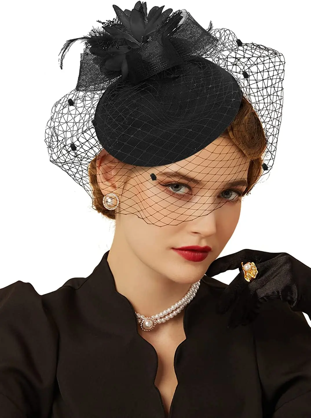 • GIBZ Fascinator Hut Damen - Vintage Design Mit Blumen & Federn