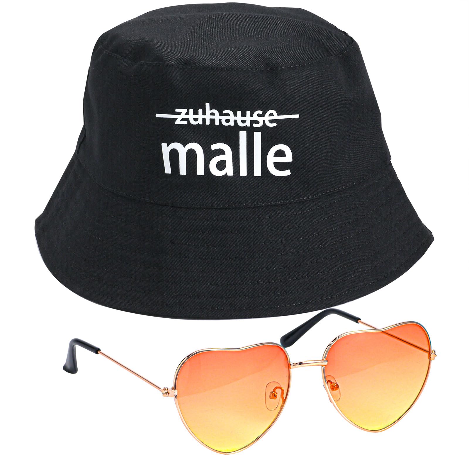 Komplett-Set: Schwarzer Fischerhut UND coole Sonnenbrille mit Herz-Motiv - alles dabei!