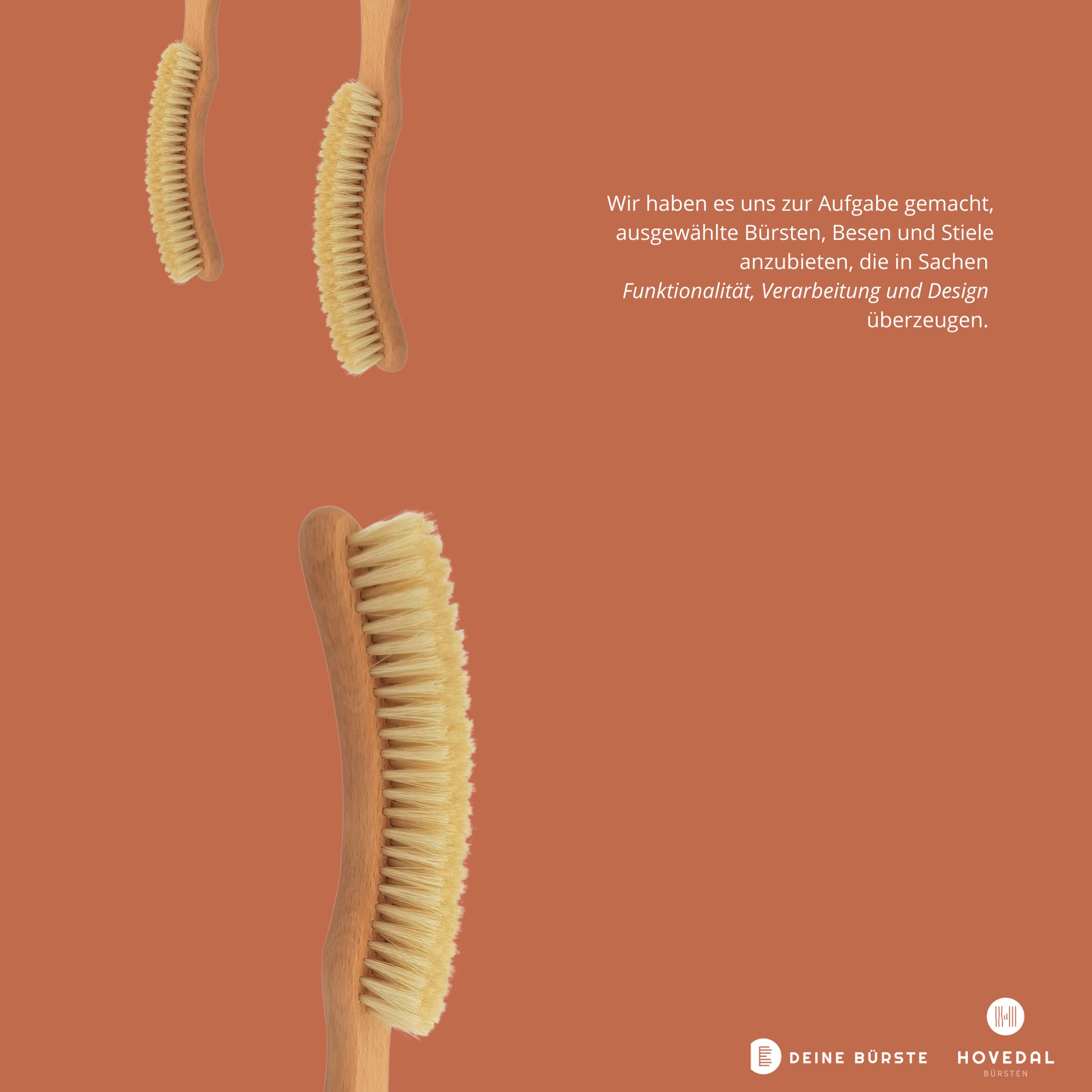 Der sichelförmige Bürstenkopf ist genial - damit kommst du super an alle Ecken und Kanten deines Hutes ran. Einfach gegen den Uhrzeigersinn bürsten und schon sieht dein Filzhut wieder aus wie neu! Die ca. 2 cm langen Borsten entfernen zuverlässig Staub und Fusseln.