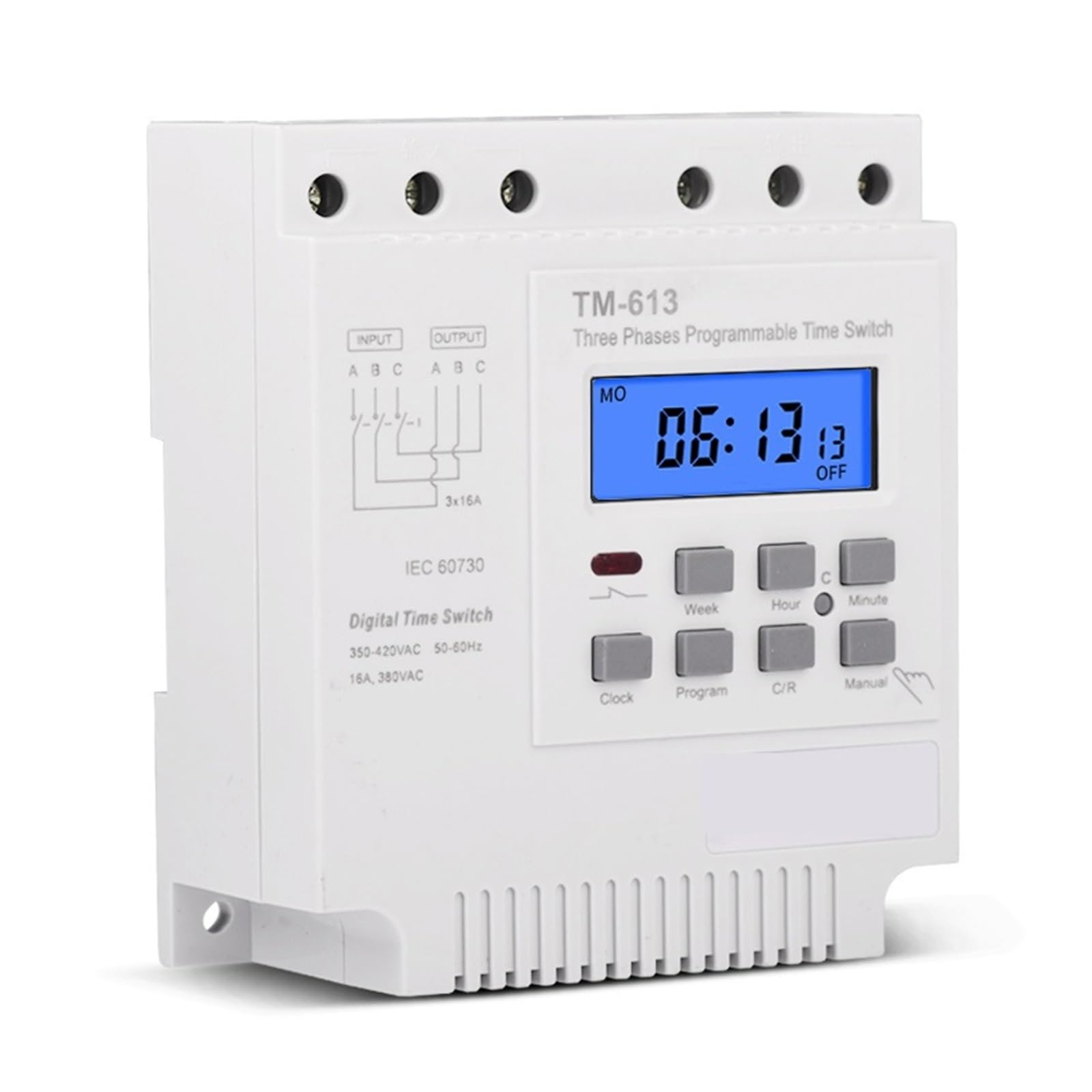 Total praktisch - diese programmierbare Zeitschaltuhr für die Hutschiene! Perfekt für 380V Dreiphasen-Anlagen mit bis zu 4kW Leistung. Mit 3-Draht-Ein- und Ausgang - kein separates Neutralleiter-Verdrahten nötig! Bis zu 17 Ein/Aus-Einstellungen pro Woche programmierbar - von 1 Minute bis 168 Stunden alles möglich. Einmal eingestellt, läuft sie automatisch weiter - perfekt für unbeaufsichtigten Betrieb. Mit Stromausfallspeicher für über 180 Tage - eingebaute Batterie sorgt dafür, dass die Einstellungen nicht verloren gehen. Einfach auf die 35mm Hutschiene klicken und fertig! Ideal für Wasserpumpen, Lüftungen, Beleuchtung, Warmwasserbereiter und viele andere Anwendungen. Die manuelle Überbrückungstaste ermöglicht temporäres Ein-/Ausschalten. Sicher und zuverlässig - made für den professionellen Einsatz. Für alle, die ihre elektrischen Geräte automatisch steuern wollen - ob im Gewerbe, in der Landwirtschaft oder zu Hause. Einfach programmieren und Energie sparen!
