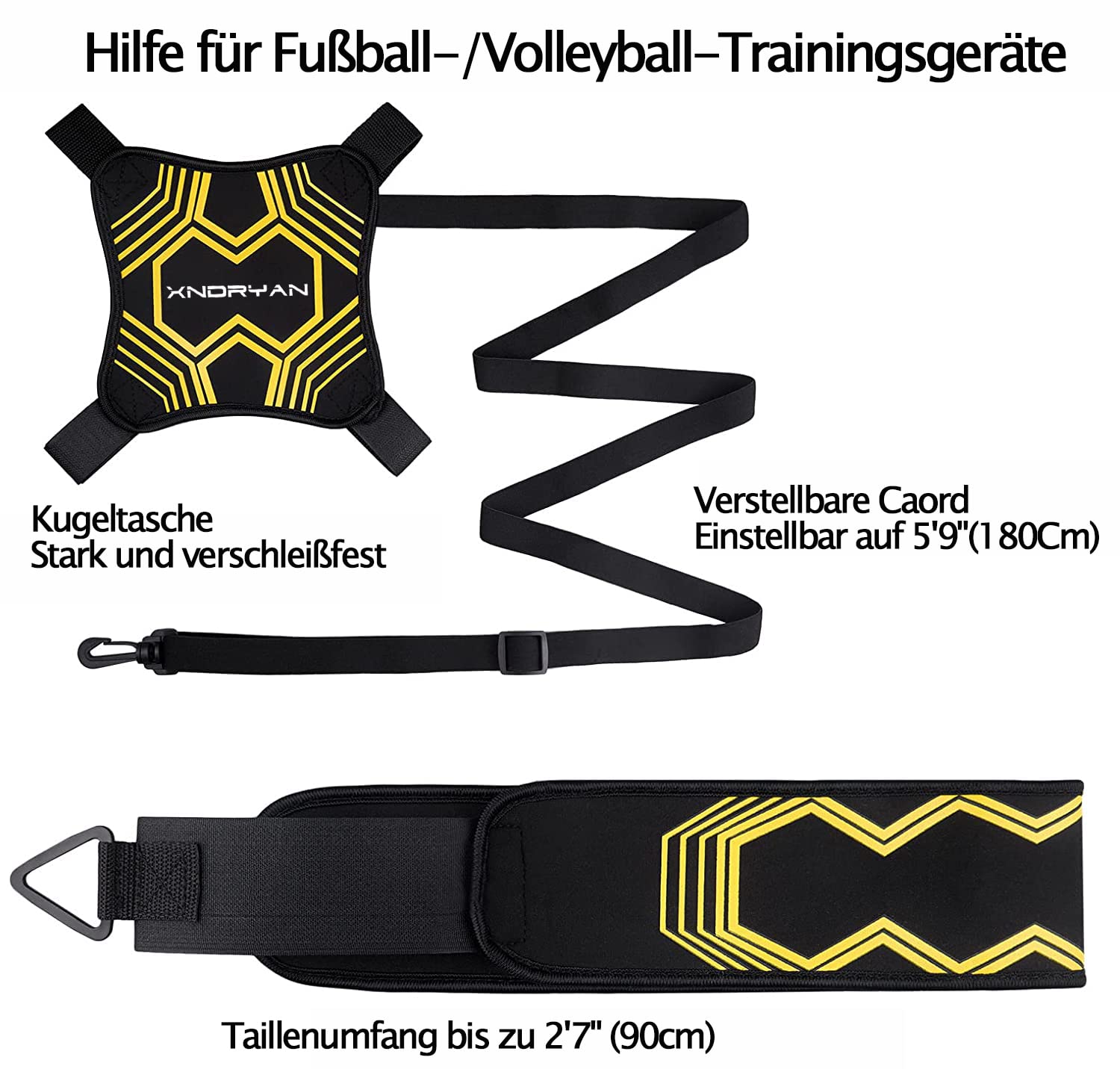 Hey Fußball-Cracks! Dieser hykoiuu Solo-Trainer macht dich zum Ballkünstler! Die elastische Schnur ist von 75 bis 200 cm verstellbar und sorgt dafür, dass der Ball immer zu dir zurückkommt - kein lästiges Ballholen mehr! Trainiere Schüsse, Pässe und Dribblings ohne Unterbrechung. Die mehrlagige Naht ist super robust und hält tausende Schüsse aus. Egal ob in der Halle, im Garten oder auf dem Platz - du verlierst nie wieder den Ball! Perfekt für Kinder, Jugendliche und Erwachsene, für Anfänger und Profis. Das Set kommt mit einer praktischen Neopren-Tasche und passt für Bälle der Größen 3, 4 und 5. (Achtung: Ohne Fußball!) Einfach der beste Trainingspartner für alle, die besser werden wollen!