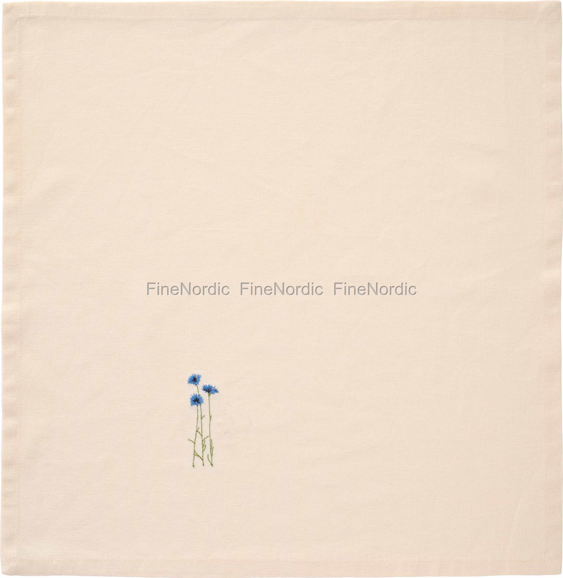 IB Laursen Stoffserviette Flora - Mit Blauen Kornblumen Auf Creme, Baumwoll-Polyester
