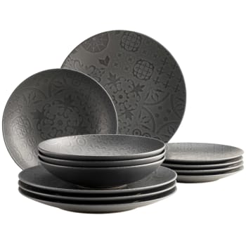 Elegantes Essen leicht gemacht! Dieses 12-teilige Zeeland Geschirrset von IBILI macht jede Mahlzeit zum besonderen Moment. Enthalten sind: 4 Suppenteller (20 cm), 4 Essteller (26,8 cm) und 4 Dessertteller (19,2 cm) - alles aus hochwertigem Porzellan. Besondere Features: • Temperaturbeständig von -20°C bis 250°C • Wasserdicht und fleckenresistent • Leicht aber dennoch robust • Zeitloses Design für jeden Anlass • Spülmaschinenfest Perfekt für den täglichen Gebrauch oder besondere Anlässe. Ob Frühstück, Mittag- oder Abendessen - dieses Set ist vielseitig einsetzbar. Die eleganten Verzierungen harmonieren perfekt miteinander. Einfach reinigen und immer bereit für deine Gäste!