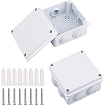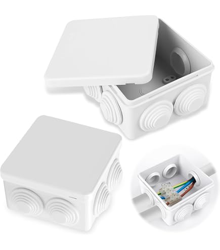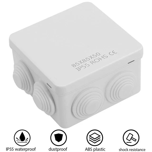Diese wasserdichten Abzweigdosen sind die Alleskönner für deine Elektroinstallation! Mit IP55 Schutz halten sie Regen, Spritzwasser und Staub problemlos stand - ob drinnen oder draußen. Aus robustem ABS-Kunststoff, 85x85x50 mm groß, mit 7 Kabellöchern à 25 mm Durchmesser. Super einfach zu installieren, mit vorinstallierten Klemmen. Perfekt für Wohnung, Werkstatt oder Garten - überall, wo du sichere Kabelverbindungen brauchst. Das Set mit 6 Stücken reicht für die meisten Projekte. Mach deine Elektroinstallation sicher und professionell - mit diesen Dosen kein Problem mit Feuchtigkeit oder Kurzschlüssen. Einfach montieren und years lang Ruhe haben!