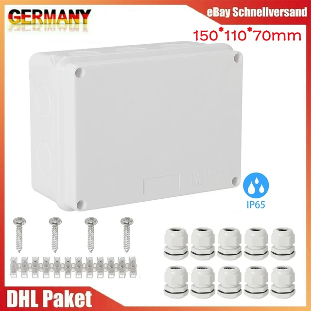 Brauchst du eine zuverlässige Abzweigdose für deine Elektroinstallation? Die HECHKJ Anschlussdose ist genau das Richtige! Mit IP66 Schutzart ist sie komplett wasserdicht und staubdicht - perfekt für den Einsatz drinnen und draußen. Die Maße von 200x120x75mm bieten genug Platz für eine ordentliche Kabelverlegung. Hergestellt aus robustem ABS-Kunststoff, der extrem langlebig ist und gute Isoliereigenschaften hat. Das Tolle: Im Lieferumfang ist alles dabei, was du brauchst - Anschlussklemmen, 4 wasserdichte Anschlüsse für Kabel mit 12-15mm Durchmesser, Lochcutter M24, Schraubenschlüssel, Dichtleiste, Bodenplatte und 8 Schrauben. Kein zusätzliches Zubehör nötig! Die Installation ist super einfach: Deckel abnehmen, Kabel durch die wasserdichten Anschlüsse führen, verdrahten, Deckel mit Dichtung schließen - fertig! Perfekt für Baustellen, Lagerhallen, Außenbereiche, Brücken oder Tunnel. Die weiße Farbe passt sich dekorativ an jede Umgebung an. Einfach bestellen, installieren und deine Kabel sind sicher geschützt!