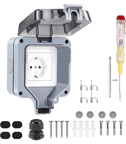 Diese Aufputz-Steckdose mit IP66 Schutz ist perfekt für Feuchträume und den Außenbereich! Selbst wenn ein Stecker eingesteckt ist, bleibt sie absolut wasserdicht - das ist echt praktisch. Einfach an der Wand montieren und schon hast du eine stabile, sichere Steckdose für Garage, Keller, Bad oder Garten. Mit CE-Zertifizierung und TÜV-geprüft für maximale Sicherheit. Die robuste Bauweise hält auch raueren Bedingungen stand. Ob für die Gartenbeleuchtung, Elektrowerkzeuge im Nassbereich oder für die Waschmaschine - mit dieser Steckdose bist du auf der sicheren Seite. Einfach installieren und nie wieder Sorgen um Spritzwasser oder Feuchtigkeit machen. Perfekt für alle, die eine zuverlässige Steckdose an Orten mit erhöhter Feuchtigkeit brauchen!