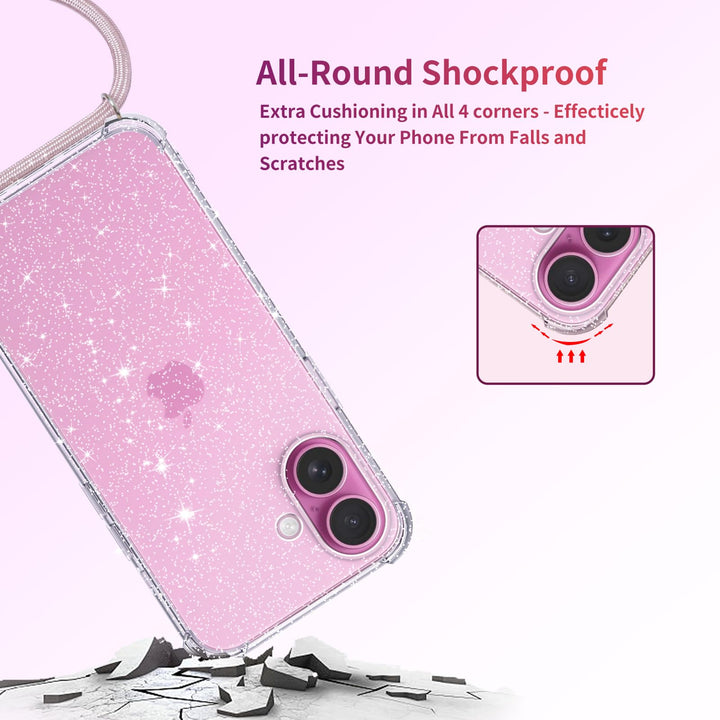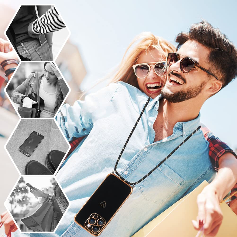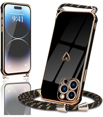 Stylish und praktisch zugleich! Diese wunderschöne iPhone 16 Hülle mit integrierter Handykette kombiniert Schutz mit modischem Design. Das Love-Herz-Muster in schwarz-gold sieht einfach traumhaft aus.